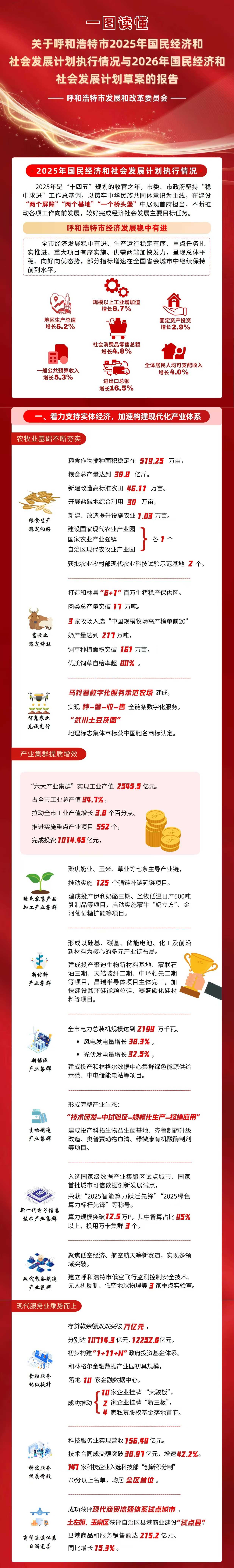 【一图读懂】关于呼和浩特市2025年国民经济和社会发展计划执行情况与2026年国民经济和社会发展计划草案的报告