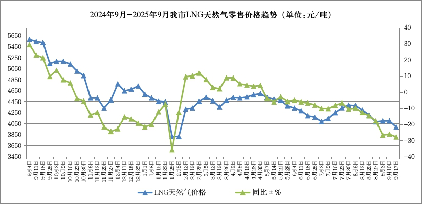 呼和浩特市价格认证监测中心对市场监测数据显示,本周我市LNG天然气零售价格为3988元/吨,比上周下降110元/吨,降幅2.68%,同比下降27.83%。