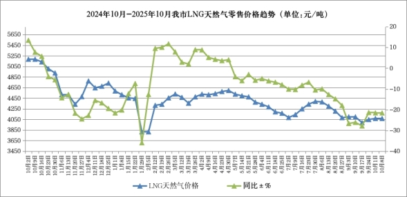呼和浩特市价格认证监测中心对市场监测数据显示,本周我市LNG天然气零售价格为4068元/吨,与上周持平,同比下降21.56%。