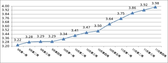 监测的15种蔬菜周平均零售价格为3.98元/斤,比上周上涨0.06元/斤,涨幅1.53%。15种蔬菜中,12个品种价格上涨,3个品种价格下降。