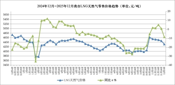 呼和浩特市价格认证监测中心对市场监测数据显示,本周我市LNG天然气零售价格为4360元/吨,比上周下降150元/吨,降幅3.33%,同比下降8.71%。