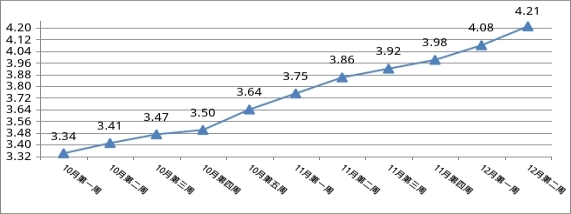 呼和浩特市价格认证监测中心对市场监测数据显示,本周我市蔬菜零售价格呈上涨趋势,猪肉、鸡蛋、水产品零售价格呈下降趋势,其他粮油副食品零售价格基本稳定。
