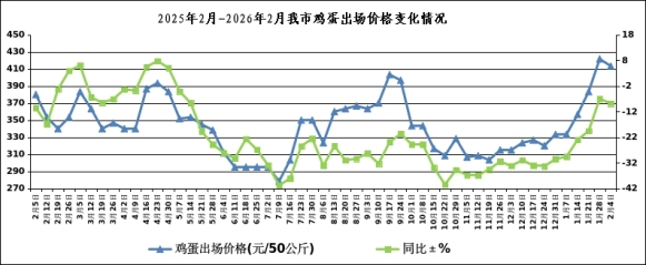本周我市鸡蛋出场价格为413.33元/50公斤(4.13元/斤),比上周下降1.98%,同比下降8.82%。