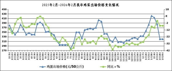 本周我市鸡蛋出场价格为320元/50公斤(3.20元/斤),与上周持平,同比下降5.88%。