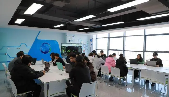 图为内蒙古算力与人工智能产教融合基地实训室的学习场景