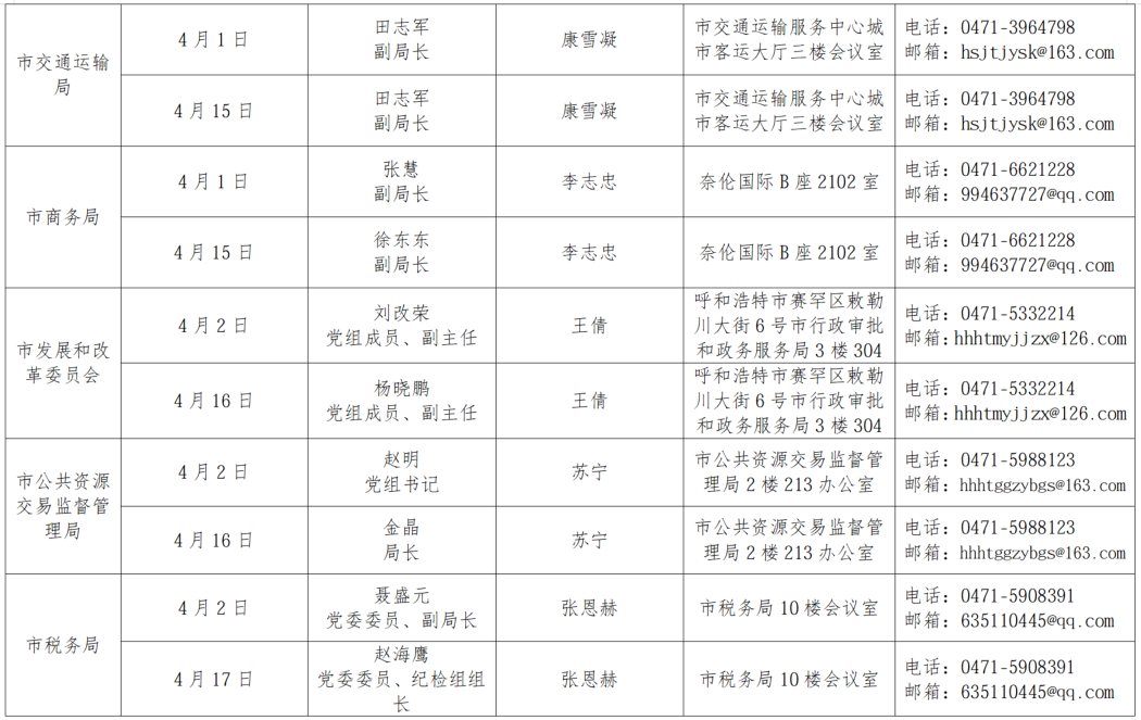 2026年4月呼和浩特市市直部门企业接待日安排公告