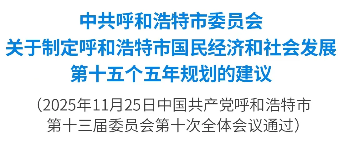 为深入学习贯彻党的二十届四中全会精神、全面落实自治区党委十一届十次全会部署要求,结合首府实际,就制定呼和浩特市国民经济和社会发展“十五五”规划提出以下建议。